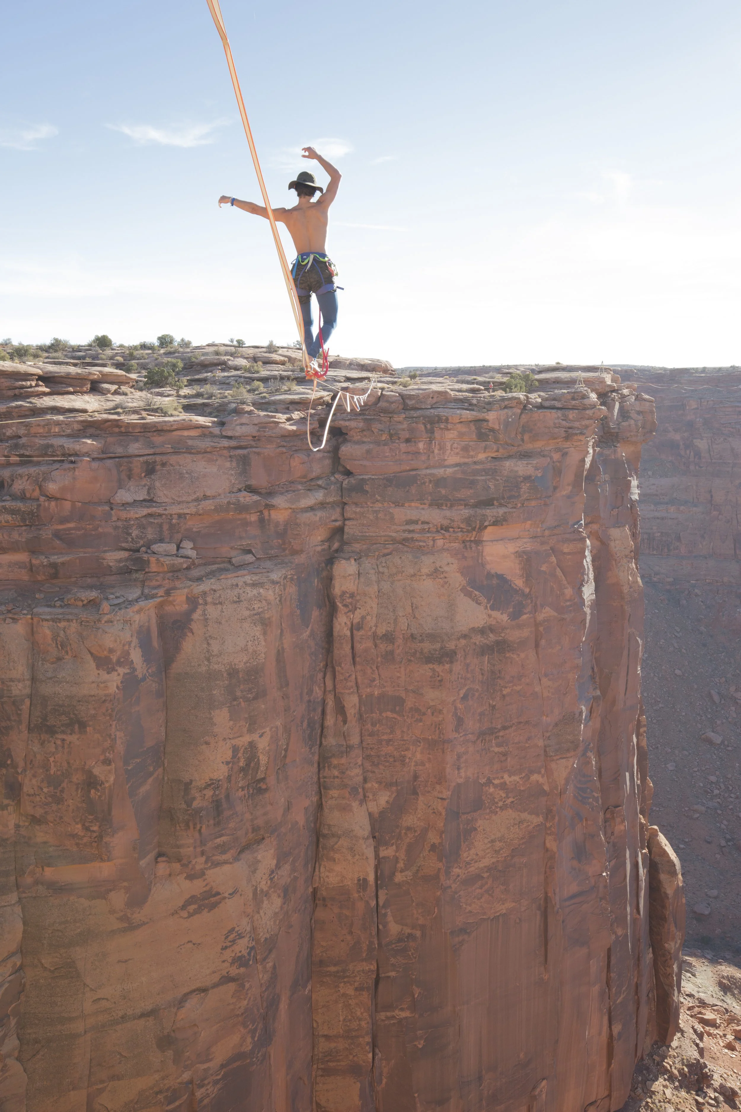 That’s right! Basically a Highline is a slackline that is installed up high with a lot more safety features and components in the system such as back up anchors and webbings. when you highline you need to wear a harness to stay safe.